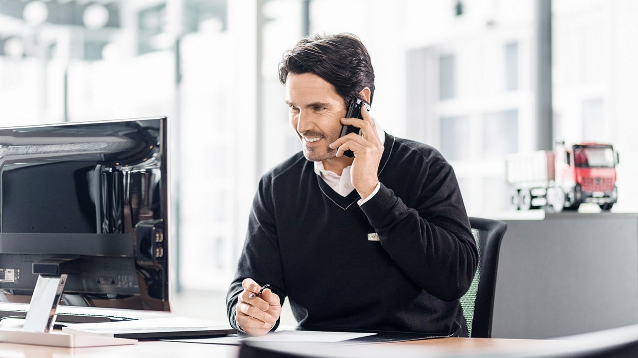Preluarea și rezolvarea profesională a problemelor – fiecare angajat al service-ului Mercedes-Benz primește cea mai bună pregătire profesională posibilă și este permanent instruit. Puteți avea încredere în ajutorul lor competent, chiar și în situații dificile. Pentru că nimeni nu cunoaște mai bine camionul dvs., decât angajații Mercedes-Benz. În definitiv, camionul a fost dezvoltat și testat de Mercedes-Benz!